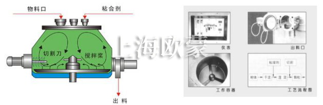 1、攪拌槳對物料干混,加粘合劑后濕混。能根據(jù)物料和粘合劑的特性使攪拌槳的旋轉(zhuǎn)速度確保運動產(chǎn)生渦流,物料充分混合。同時,制粒刀處交匯區(qū)域?qū)Ψv的物料團充分打碎成顆粒;